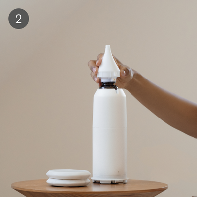 1. This custom 60ml bottle fits directly into the Ambience diffuser for effortless setup—no decanting necessary